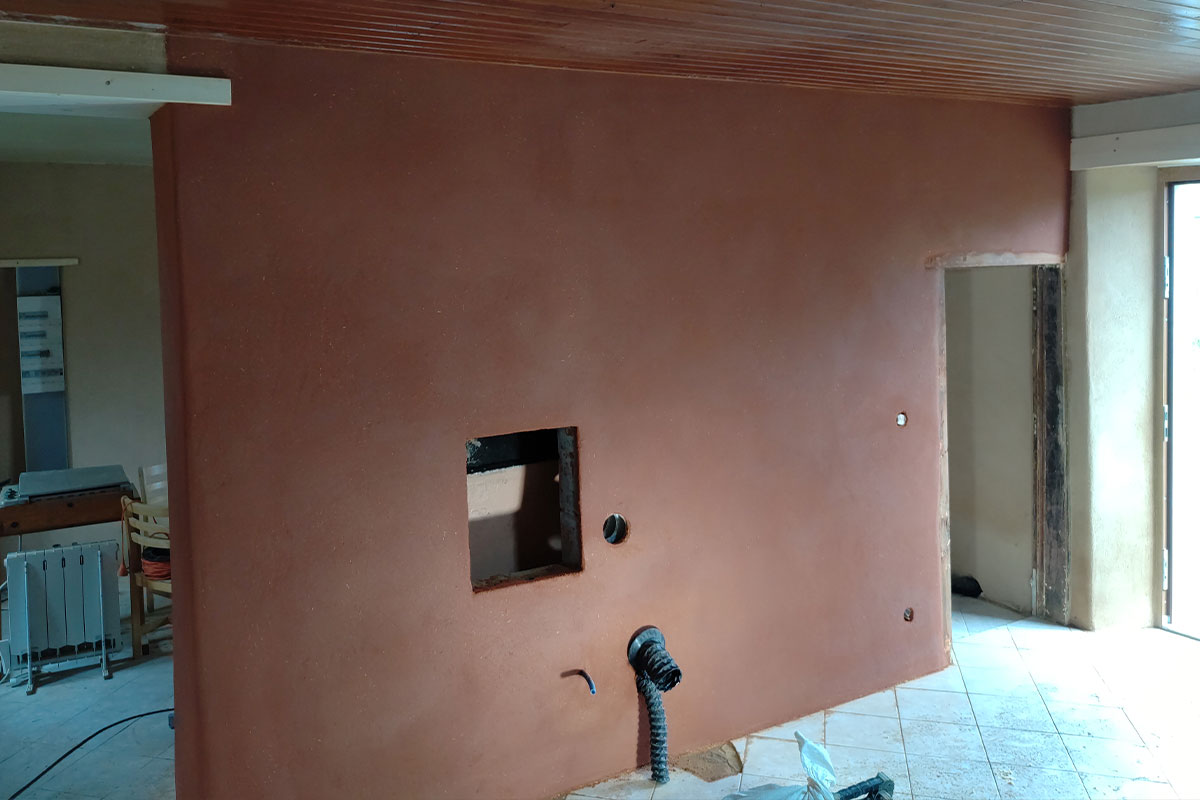 Alchimie Construction travaille les enduits naturels terre, chaux ou chanvre pour créer des finitions chaleureuses, respirantes et harmonieuses.