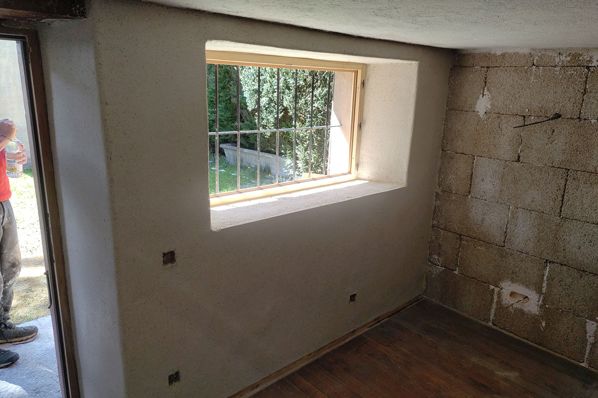 Alchimie Construction travaille les enduits naturels terre, chaux ou chanvre pour créer des finitions chaleureuses, respirantes et harmonieuses.